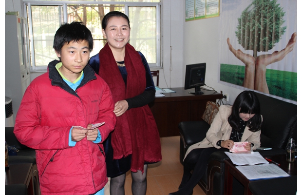 随州网讯 随州市曾都区洛阳中心学校为了不让贫困学生因家庭困难而失学,积极争取多方资助,今年来该校资助的个人有10多人次,社会团体有3个。图为曾都区资助中心代表随州全友家私来校资助困难学生。 (记者 周强 通讯员 赵正勇摄)