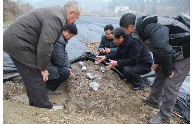 随州网讯 1月6日,随州市曾都区科协驻南郊办事处毛家棚村扶贫工作队,到4组现场指导菇农,做好世界珍稀菇羊肚菌的冬季管理,让贫困户种菇致富。 (通讯员 多思 摄)