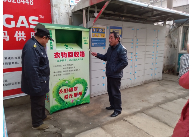 随州网讯 近日,随州市曾都区东城烈山社区全体网格员联合市民政局开展废旧衣物回收,并积极配合相关工作人员为各小区安装“衣物回收箱”,使得闲置衣物变废为宝,合理利用。(记者 周强 通讯员 何淑丽摄)