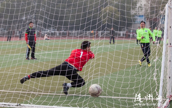 随州网讯   1月17日,随州足协首届贺岁杯落下帷幕,70分钟双方战平,点球大战中,博裕生态4:3战胜银润担保获得冠军。(记者 徐 斌摄)