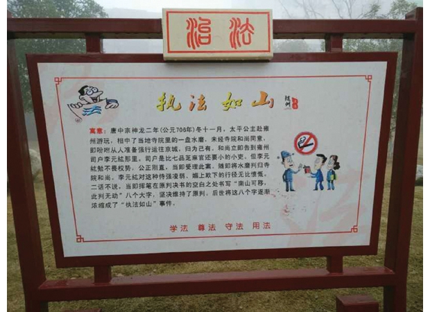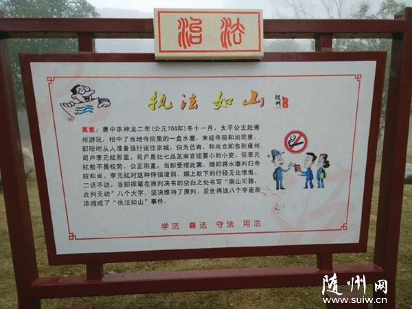 随州网讯  连日来,随城居民在神农公园游玩时,意外发现这里变得法味浓厚。据了解,为加快法治建设步伐,随州市在现有的神农公园中融入法治文化元素,增添法治文化景观,使居民在公园内休闲、娱乐、游玩、健身的同时,感受法制宣传的氛围。 (记者 徐军国摄)