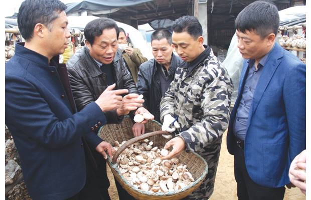 随州网讯 以香菇为主的食用菌是随州市特色农业,去年食用菌出口创汇达5.4亿美元。3月4日,市食用菌协会负责人到随州高新区裕民村一组菇农王道勇的菇棚里,对春季袋料香菇生产进行技术指导。 (通讯员 多 思摄)