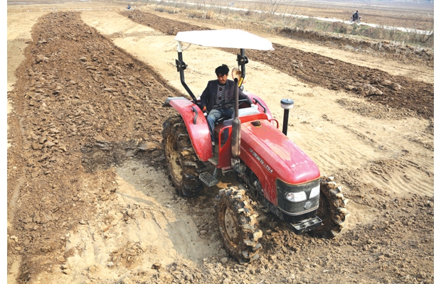随州网讯 机声隆隆耕田忙,随州市随县均川镇农民抢抓季节,开展农耕生产。 (记者 孙洪涛 摄)