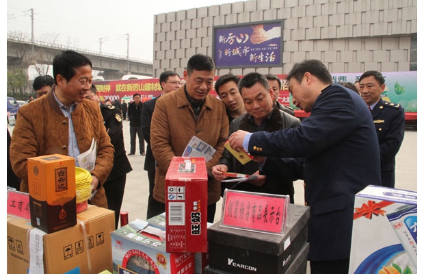 随州网讯 3月15日,随州市随县举行“3·15”维权宣传活动。此次活动以“新消费·我做主”为主题,当天共展示8大类假冒伪劣商品210多个品种,销毁假冒伪劣商品价值7万余元,现场接受咨询80余人次,受理消费者投诉7起。(记者 周强 通讯员 朱玲 摄)