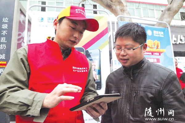 国网随州供电公司的青年志愿者为市民解答用电难题、宣传安全用电知识