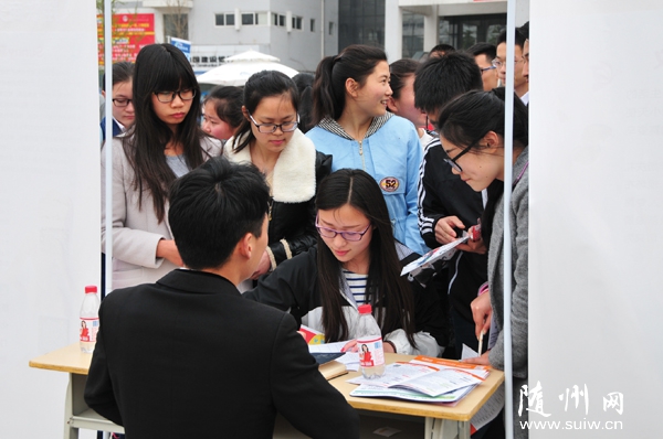 随州网讯  3月22日,随州职业技术学院携手58同城在学院编钟广场举办首届勤工俭学主题招聘会,让在校大学生了解招聘过程及就业环境,提高在校大学生应聘和就业技巧,为大学生提供兼职求职、实习就业机会。 (通讯员 张亦飞 何宁摄)