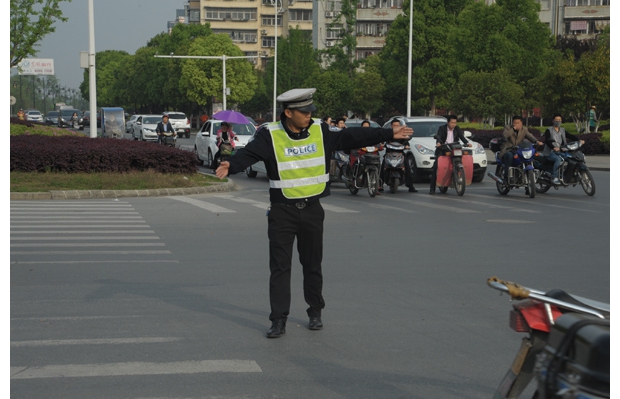 随州网讯  在城区各个重点路段、时段以及主要路口,每天都能看到一批身着警服和反光背心、佩戴白手套的民警、协警在道路上指挥交通,这是随州交警在城区创建的文明交通“三岗”交警形象服务型窗口,即干部高峰岗、护学岗、形象展示岗。 (通讯员 李月仙 周晋屹摄)