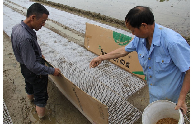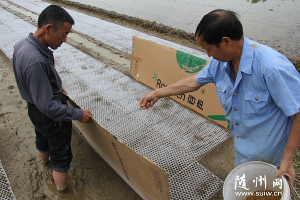4月15日,随州高新区淅河镇独山村向科技要效益,利用秧盘下稻种,秧苗撒播在大田,不仅省工、省时、减少劳动强度、降低生产成本,还能增产增收。(通讯员 石守京摄)