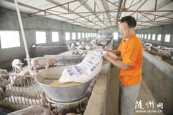随州网讯  随州市各地近年来不断推出新举措,创造良好投资环境,吸引外出人员返乡创业。猪肉价格的持续上涨,使得养猪成了返乡创业者的热门选择。图为随县尚市镇一家返乡创业人员创办的养猪场内,工人投喂饲料。(记者 王璟天 摄)