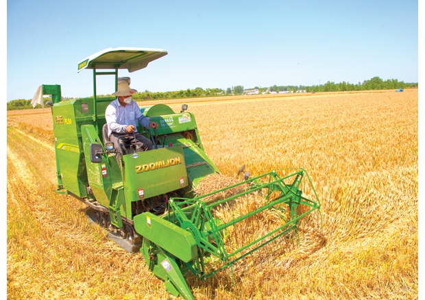 眼下正是小麦收割的季节,随县均川镇均河村村民抢抓晴好天气,组织收割机抢收小麦。 (记者 王璟天摄)