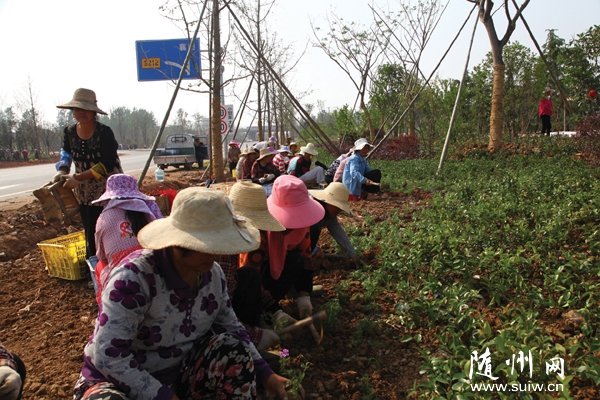 随州网讯 日 前 ,新316国道绿化工程正在紧张有序建设中,确保在寻根节前完成,为整个新316国道增色添景。(记者 王璟天 摄)