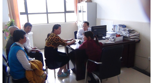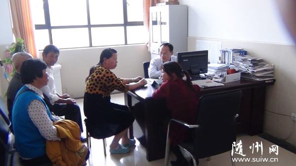 随州精神卫生专业学术带头人、曾都医院心理科主任鲁丛林,给就医者及其家属做心理咨询的情景。 (记者 周强摄)