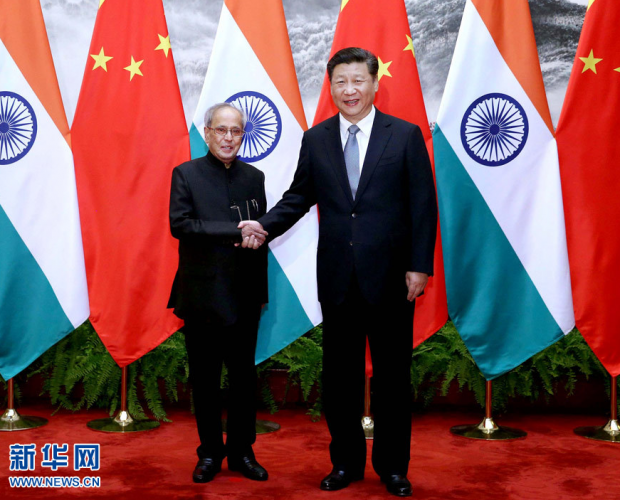 5月26日,国家主席习近平在北京人民大会堂同印度总统慕克吉举行会谈。 新华社记者 刘卫兵 摄