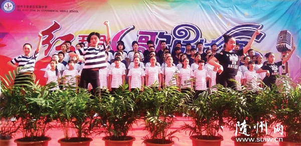 随州网讯  随州市曾都区实验中学举行了一场“红五月”歌咏比赛,同学们载歌载舞,激扬青春。最后,该校七(3)班、七(9)班荣获七年级一等奖,八(6)班、八(7)班荣获八年级一等奖。 (通讯员 丁郁青摄)
