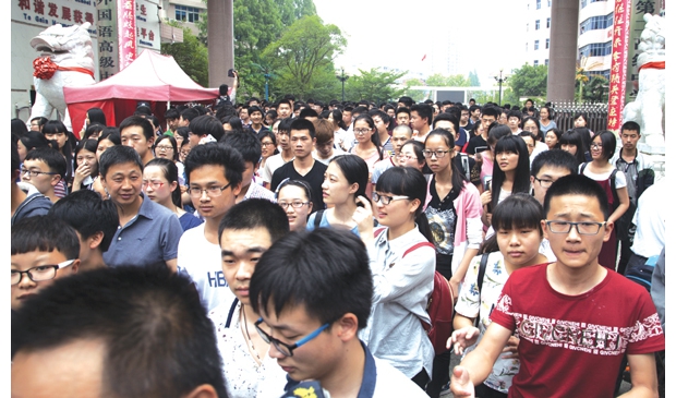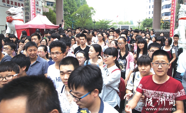 6月7日,高考随州二中考点,考生走出考场。(记者 王璟天摄)