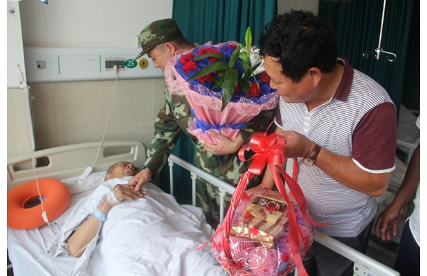 “我们一直想找到那两位好心人,可我一直一个人在医院照顾他脱不开身,只得委托朋友多方打听。”陈先生说,“6月7日下午,那名仍然牵挂着老人病情的武警战士,因不能亲自前去医院探望老人,委托朋友周先生到曾都医院看望,我才得知救人的武警战士姓吕。”