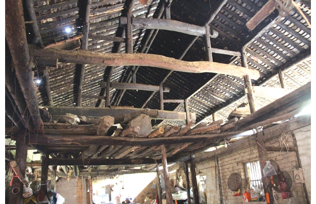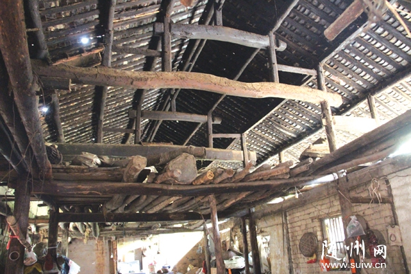 朱大妈现在住的房子过去是生产大队的卫生室,老人告诉我们,现在她和她中风偏瘫的老伴就住在这座老房子里。走进房子,给人的感觉是阴冷潮湿,房顶的木质屋架完好如初,只是上面落有一层厚厚的灰尘,这些灰尘见证着整座房子的历史和沧桑。朱大妈家除了老房子,那些鲜见的老家具在这里也能看到一部分,如箩筛、条几、香案座、老式八仙桌等等。