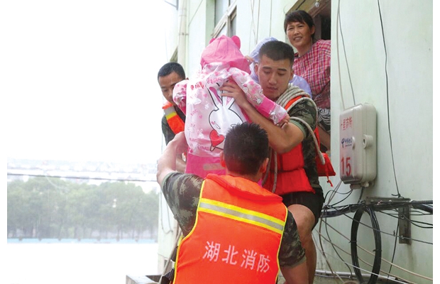 6月19日,消防官兵营救被困群众。 ·通讯员 冯少勇摄·