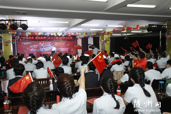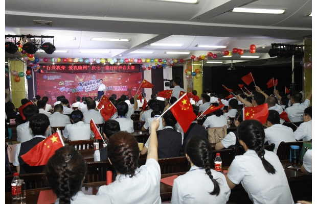 “七一”前夕,中国建设银行随州支行举行“行兴我荣,爱我随州”好声音大赛,庆祝建党95周年。(记者 徐斌 通讯员 雷必荣摄)