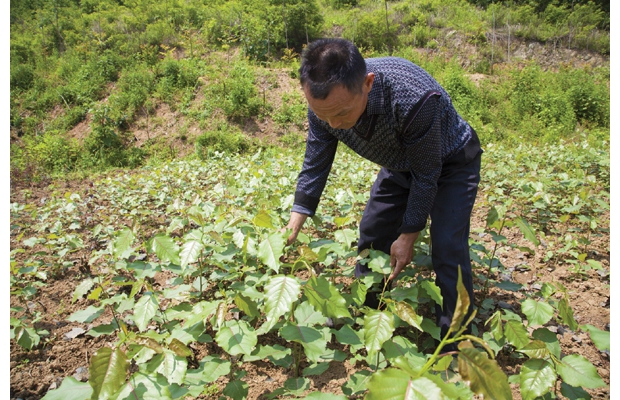 随州网讯 今春,随州市随县尚市镇民乐农林牧生态专业合作社选育引进4万株春天不飞絮的杨树新品种“碧玉杨”,每亩苗圃可为村民增收3000至10000元。(记者 王璟天摄)