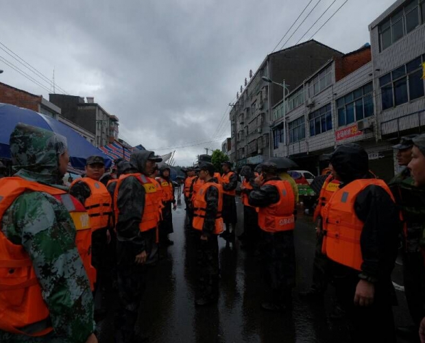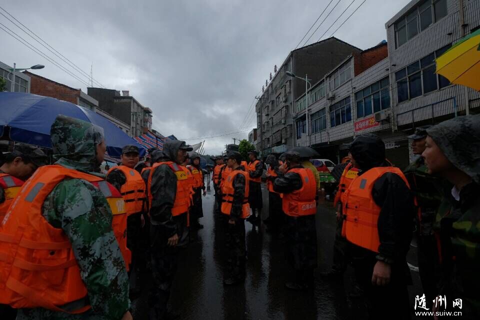 7月20日4时10分,随州武警支队到洛阳镇,现场分派救援任务