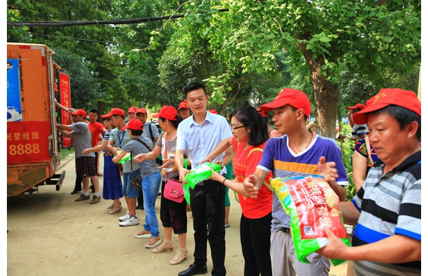 8月2日,随州市委宣传部、市文明办携手随州碧桂园房地产开发有限公司、市志愿服务联合会以及随州文明网、随州领秀传媒向曾都区洛阳镇捐赠由随州碧桂园提供的价值4万元米面油等食品,帮助洛阳镇居民灾后重建。(本报记者 王 天 通讯员 毛利 摄)