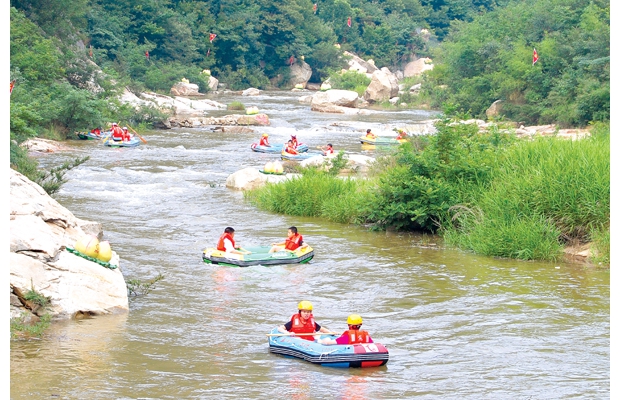 走进该景区,只见景区内停车场车辆爆棚。“当前正是漂流旺季,仅今天上午就迎来上千名漂流游客。近几年,通过漂流还带旺了区域内的乡村游。”该景区相关负责人高兴地对记者说,随着景区内基础设施的完善,现在周边城镇越来越多的人携家带口到景区漂流,不仅给景区带来了经济效益,而且还为周边“农家乐”每年带来了近2000万元的收入。