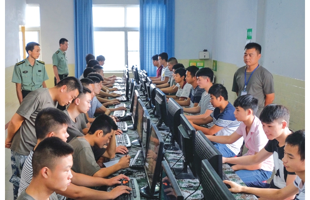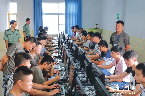 随州网讯 随州市曾都区人武部严把2016年夏秋季征兵关,坚持廉洁征兵,在体检中运用信息管理系统。截至8月4日,该区已有519名青年进站体检。图为参军青年正在接受心理测试。 (本报记者 李文军 摄)