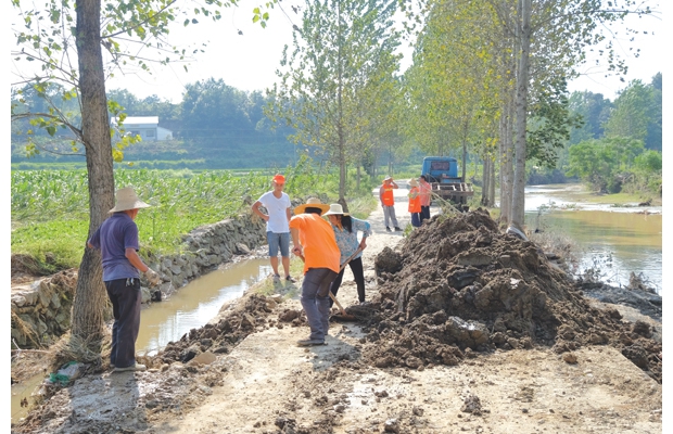 曾都区何店镇公路管理站组织养护工修复水毁公路