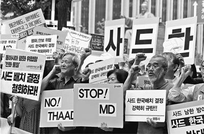 韩国抗议部署“萨德”的行动浪潮已持续1个多月。图为首尔光华门广场,韩国民间团体举行示威活动,要求韩美当局撤回部署“萨德”决定。