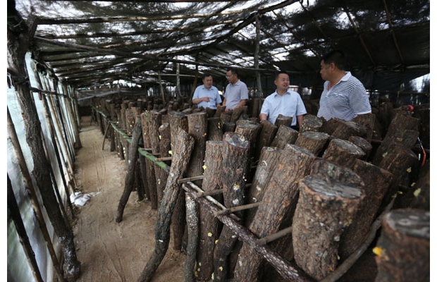 随州网讯 随州广水市蔡河镇黄土关村农民利用山场资源,发展白木耳种植,助农增收。 (记者 徐斌 摄)
