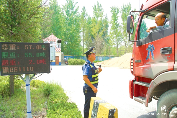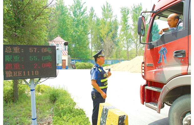 随州网讯 8月16日,随州市公路路政、公安交警、城管执法、交通运政等部门组成路面联合执法专班,开展为期三个月的公路超限超载运输专项整治,切实维护公路桥梁安全畅通,保障人民群众生命财产安全。图为广水市公路段蔡河超限检测站对过往车辆进行称重。 (记者 王璟天摄)