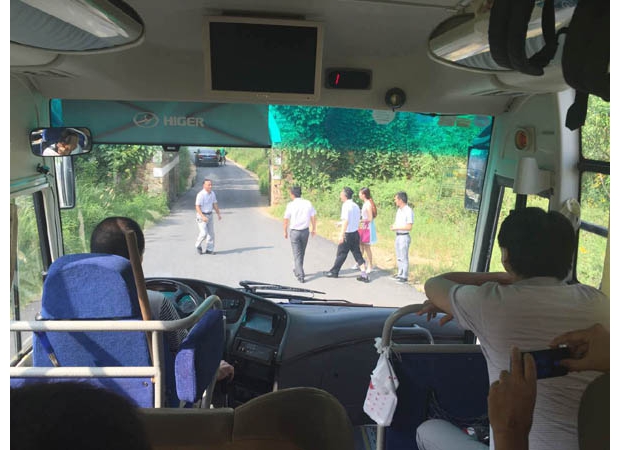 8月17日下午1时30分,采访团从随州宾馆出发前往广水(记者黄芳芳 摄)