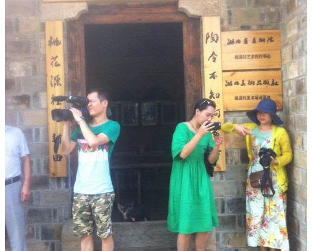 记者团抵达桃源村(记者黄芳芳 摄)