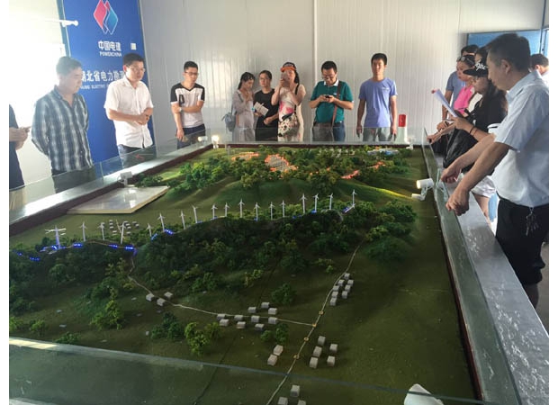 记者团来到中电建十里100兆瓦风光一体化发电场,该项目总投资8.8亿元,占地1900多亩,项目规划建设容量100兆瓦,采用了风光一体化模式。于2015年12月28日开工建设,2016年6月28日实现了并网发电。在场区内山脊上布置50兆瓦低风速山地风力发电场,该项目投资4.5亿元,占地300亩,计划 2017年10月份全部建成并网发电。