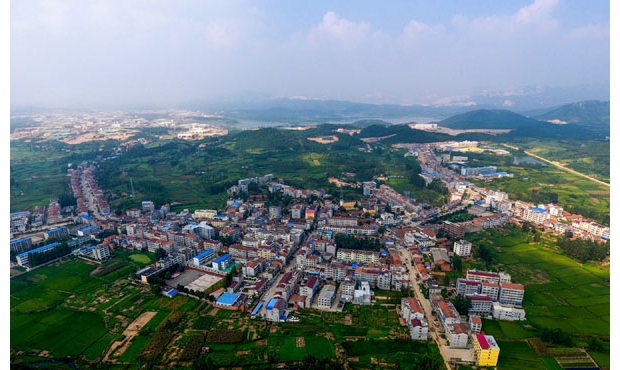 随州网讯 随州市随县吴山镇积极推进美丽乡镇建设,通过治乱、治脏、治违,增强功能、增加绿量、增进文明,提升规划、建设、管理水平,让集镇面貌焕然一新。图为吴山镇集镇鸟瞰图。 (记者 李文军 摄)