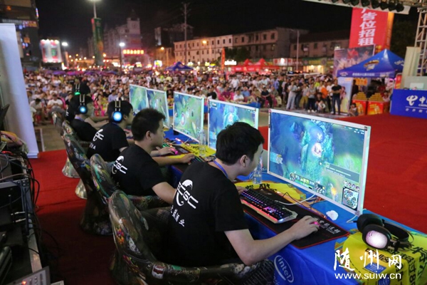 随州网讯 湖北省ECGC电子竞技大赛鄂西北片区总决赛8月25日至26日在随州大润发超市广场举行,随州、孝感、十堰、襄阳市的电子竞技爱好者云集随州展开对决,最终孝感战队夺得片区冠军。 (记者 徐斌摄)