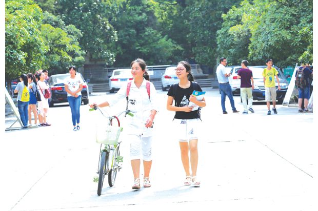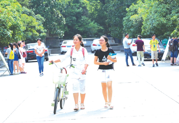 随州网讯 9月1日,我市中小学正式开学。图为8月31日,随州市曾都区实验中学的学生到学校报到,领取新课本。(记者 徐斌 摄)