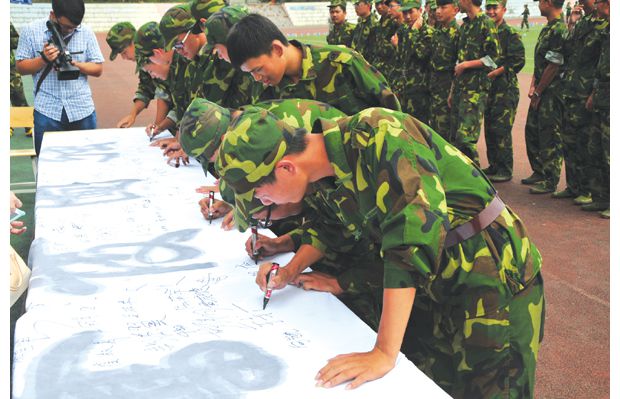 随州网讯 近日,为纪念“九一八”事变85周年,随州职院千名学子在“奋发图强”的大型横幅上签下名字,同学们说,“铭记历史是为了更好地前行,我们相信在漫长的苦难史后,是沉睡的中华民族的崛起、是中国梦的实现。”此次签名活动是为了倡议更多的人牢记历史,勿忘国耻,弘扬爱国主义精神。 (通讯员 张亦飞摄)