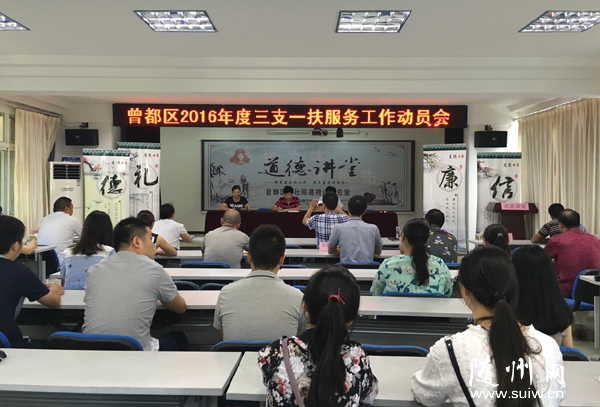 随州网讯 日前,随州市曾都区2016年度“三支一扶”服务工作动员会在曾都区人社局会议室召开,来自曾都区的10个“三支一扶”服务单位和2016年招募的33名“三支一扶”大学生参加了会议。图为会议现场。(通讯员 王 丽摄)