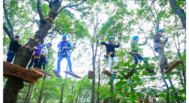 随州网讯 国庆长假期间,随州市大洪山风景名胜区旅游持续火爆,累计接待游客5万余人次。图为景区新推出的剑口飞跃项目,该项目集运动、体验、观景于一体,紧张而又刺激,吸引了众多游客参与。(记者 李文军 特约记者 贺晓利 摄)