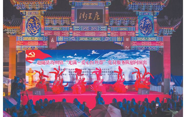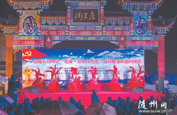 随州网讯 10月12日,随州市委宣传部、市文联、市文明办和随县县委宣传部组织的专场文艺演出走进随县均川镇,慰问随县供电公司均川供电所“光满·爱心红丝带”共产党员服务队。15年来,“光满·爱心红丝带”共产党员服务队以无私无畏的大爱行动帮助艾滋病患者抗击病魔,重拾生活信心。 (本报记者 徐 斌摄)