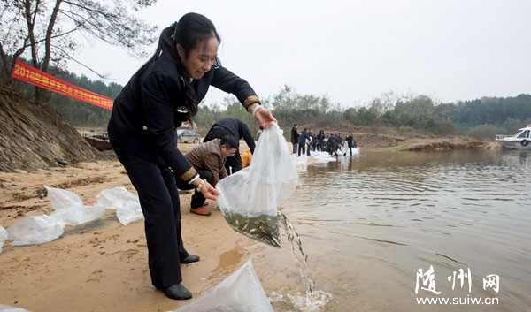 随州网讯  11月25日,随州市农业局在先觉庙水库开展渔业资源人工增殖放流活动,投放草鱼、白鲢、花鲢、鳊鱼、细鳞斜颌鲴等本地鱼种共计50余万尾。增殖放流是恢复天然水域渔业资源种群数量,维护生物多样性,保持生态平衡,净化水质,增加渔民收入,保证渔业生产持续发展的有效方式。(本报记者 徐斌摄)