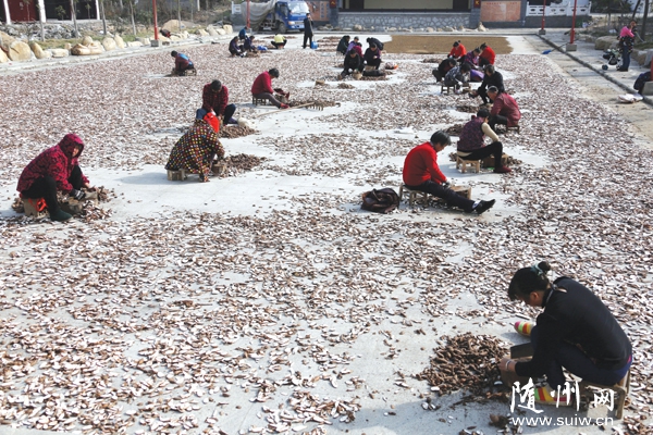 随州网讯  随州市随县太白顶风景区农民正在整理野生中药材白芨片。野生白芨片是当地独有的中药材,现在主要用于出口。(本报记者 孙洪涛摄)
