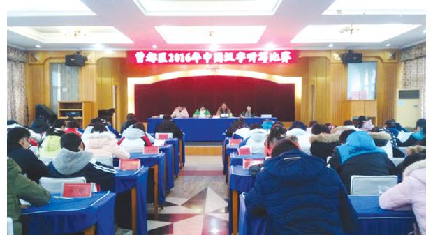 这是文峰学校代表队第二次夺得曾都区汉字听写大赛的桂冠,他们将代表曾都区参加随州市选拨赛,夺取参加中国汉字听写大会湖北省选拨赛资格。(通讯员 蔡纯 冯学琴摄)