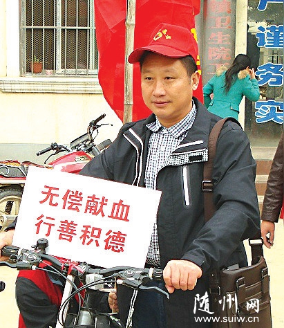 付洪刚 男,1980年10月出生,湖北骏力专用汽车有限公司办公室采购员。付洪刚自2007年开始,无偿献 血37次,机采血小板47人份,总捐血量达37600毫升。他自2007年在广东中山打工时便开始献血,他每隔一个多月就去献一次血小板,有的时候献一个治疗量,有的时候献两个治疗量。他曾先后获得广东中山献血奉献奖铜奖、随州市献血奉献奖银奖、随州市无偿献血先进个人等荣誉称号,2015年4月被评为随州楷模。