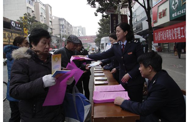 广水市地税局工作人员向市民宣传税收法律法规知识