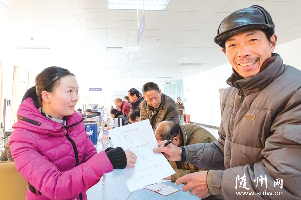 随州网讯 服务群众无小事。日前,随县万和镇退休职工史乐山只填写了一张表格就完成了退休申报手续。据悉,随县社会养老保险局为了让群众办事少跑路、少花钱,自己设计一张表格由群众填写,员工电脑录入,一次完成,大大方便了群众。(本报记者 李文军 通讯员 刘霞摄)