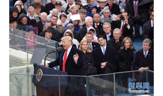 1月20日,在美国首都华盛顿国会山,特朗普在美国第45任总统就职典礼上宣誓。当日,美国当选总统、共和党人特朗普在美国首都华盛顿国会山举行的就职典礼上正式宣誓就任美国第45任总统。 新华社记者殷博古摄