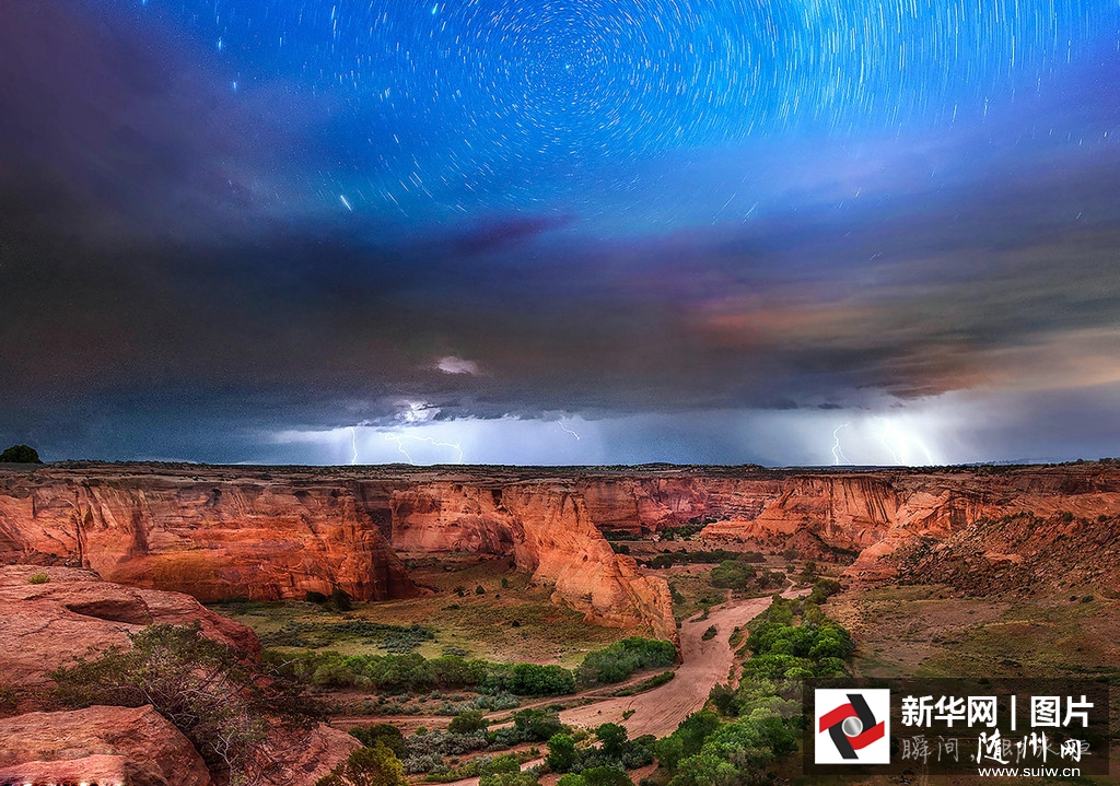 摄影师Klaus Priebe拍摄了一组夜空美景照。画面中星光熠熠的银河与壮丽的地貌风光相互衬托,美不胜收。其中一张照片中可以看到,美丽的银河在可怕的风暴之上出现显得分外光彩夺目。摄影师在美国的亚利桑那州、犹他州、新墨西哥州和科罗拉多州拍摄下了这些画面。图片来源:视觉中国